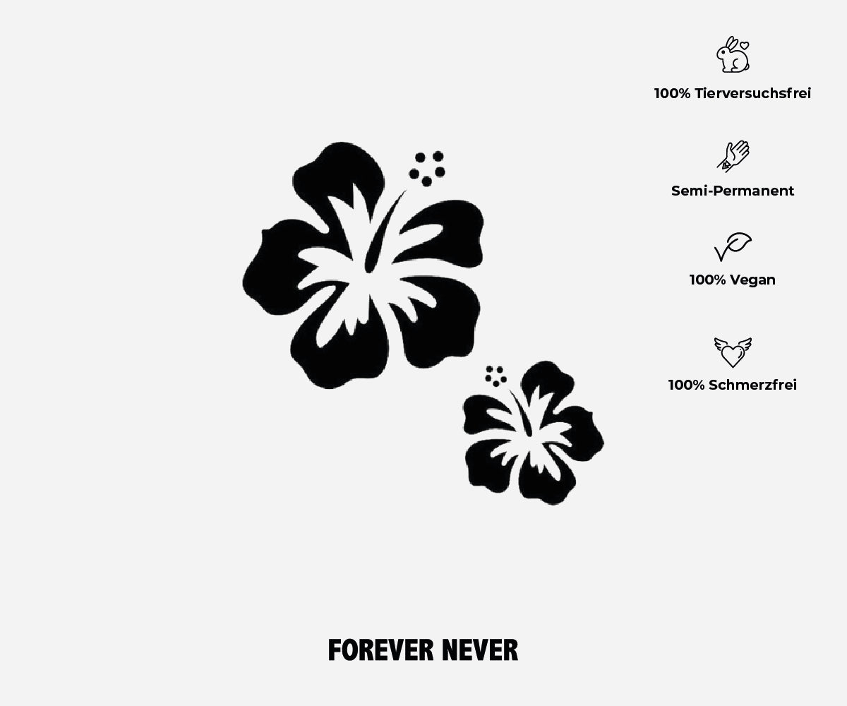 Der Hibiskus symbolisiert Schönheit, Zärtlichkeit und die Vergänglichkeit des Lebens. In vielen Kulturen, insbesondere in tropischen Regionen, steht die Blume für exotische Eleganz und Freude. Sie erinnert den Träger daran, die Schönheit des Lebens in vollen Zügen zu genießen, auch wenn diese vergänglich ist. Der Hibiskus steht auch für Femininität, Zartheit und innere Stärke. Als Tattoo kann er eine Hommage an sonnige Tage, positive Energie und den Wunsch nach einem Leben im Einklang mit der Natur sein. Unsere Tattoos sind vegan, hautfreundlich und wasserfest, sodass sie nicht nur stylisch, sondern auch praktisch sind.
