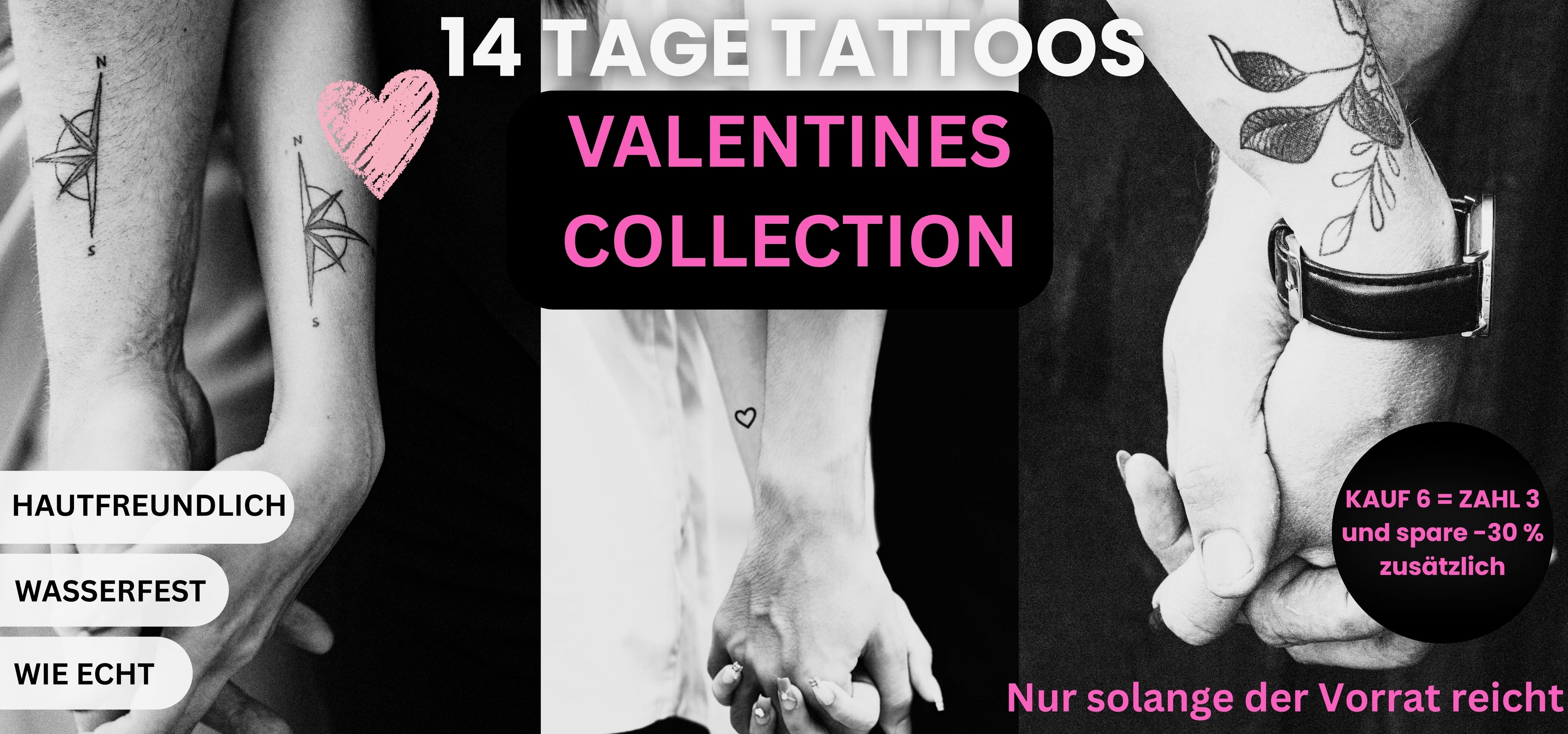 Unsere semi-permanenten Tattoos sind nicht nur vegan & tierversuchsfrei, sondern auch 100% frei von Chemikalien! Mit unserer innovativen Tattootinte entwickeln sich die Tattoos noch besser. Unsere Weltneuheit: Tattoostift, ergänzt unsere Tattoos und verschafft dir unendliche Gestaltungsmöglichkeiten.