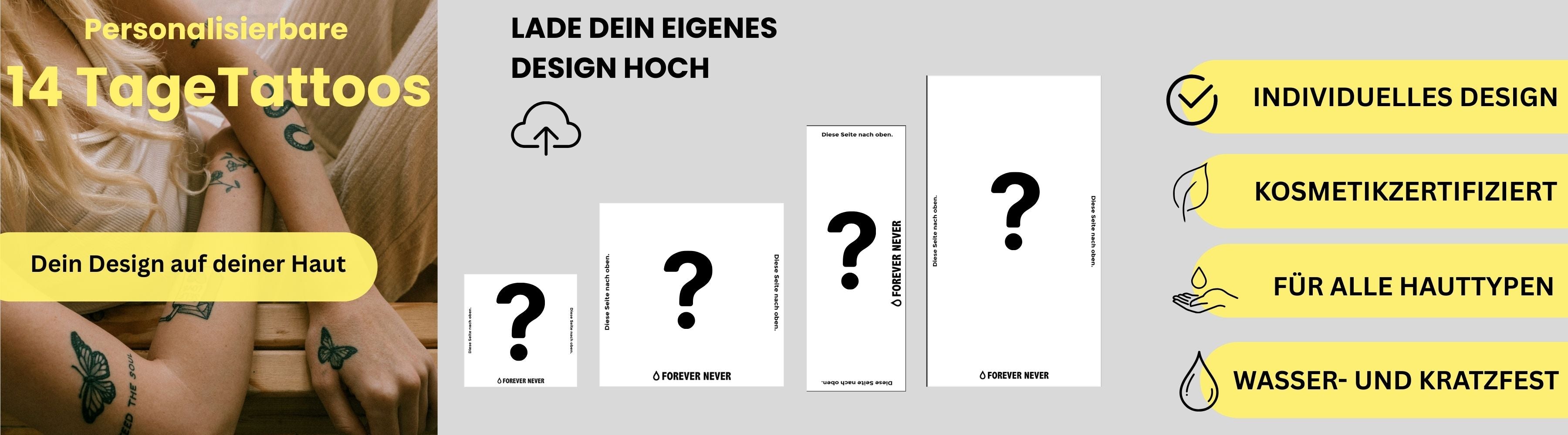 Erstelle dein eigenes Tattoo - perfekt, um dein Design zu testen oder gemeinsam mit deinen Liebsten zu tragen.