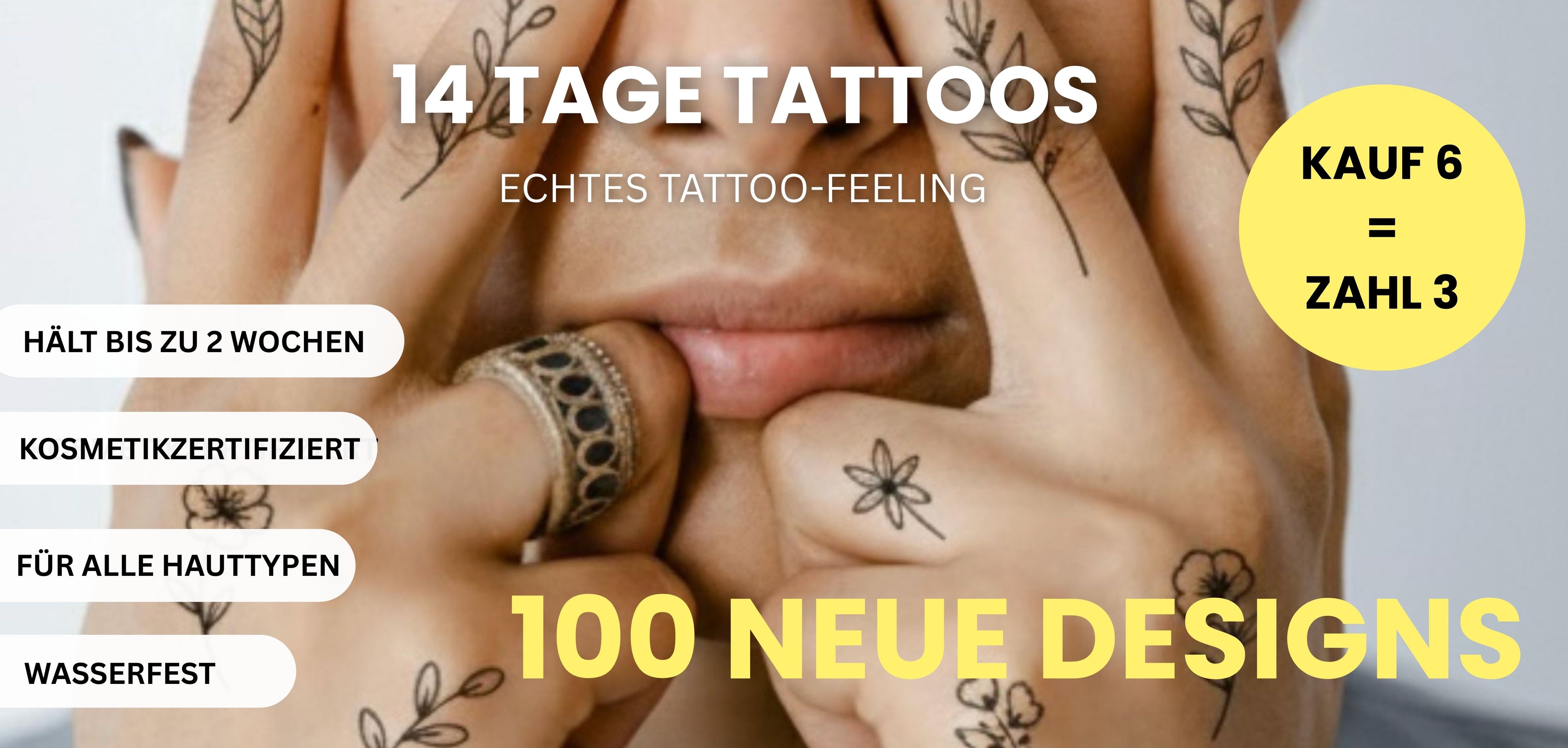 Unsere Mission ist es, dir hochwertige, temporäre Tattoos zu bieten, die Spaß machen, leicht anzuwenden und einfach sicher sind. Gemeinsam mit dir feiern wir das Leben und lieben die Freiheit! Lass dich inspirieren und erfinde dich neu - Temporäre Tattoos ohne Kompromisse!
